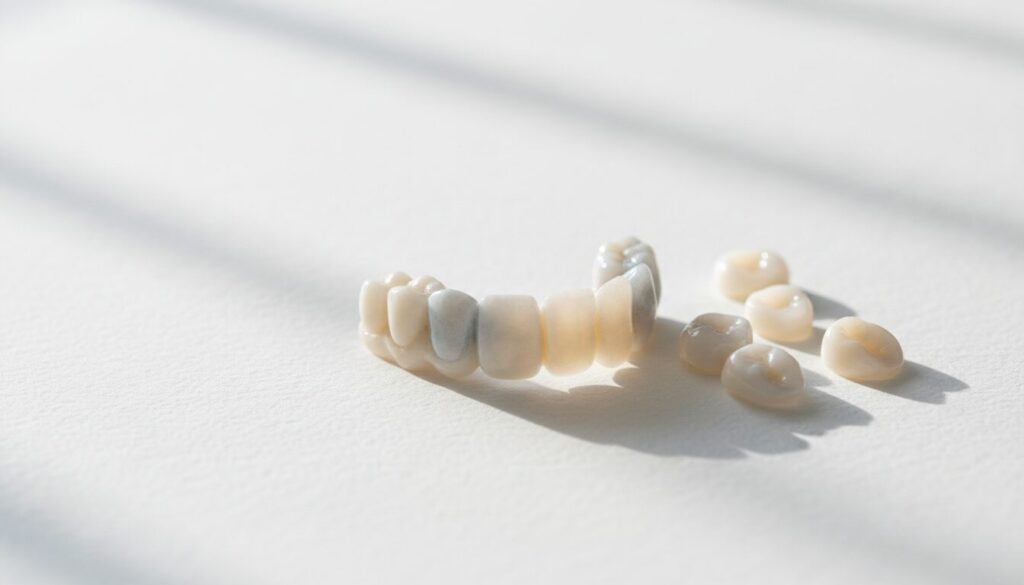 レジンは加工や修正がしやすいため、お口の状態に合わせて形を調整するのに適しています。最終的なセラミックの歯に比べると強度は劣りますが、治療中の変化に対応しやすいメリットがあります。見た目も天然の歯に近い色で作ることが可能です。