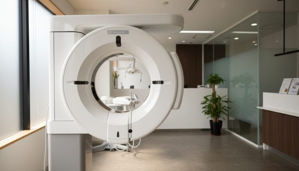 インプラント前のCT検査では、骨の厚みや神経の位置などを立体的に確認します。初診では検査の流れや所要時間の目安もあわせて相談しやすくなっています。